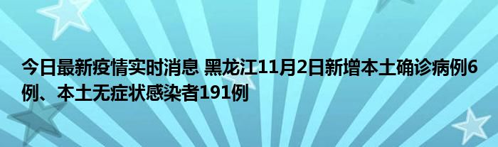 今日最新疫情实时消息 黑龙江11月2日新增本土确诊病例6例、本土无症状感染者191例