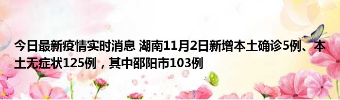 今日最新疫情实时消息 湖南11月2日新增本土确诊5例、本土无症状125例,其中邵阳市103例