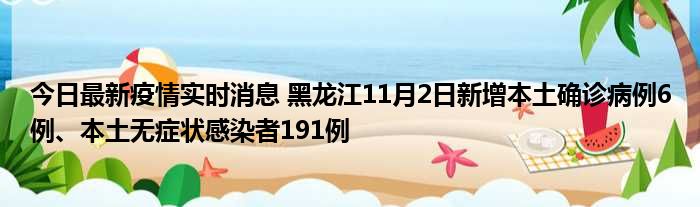 今日最新疫情实时消息 黑龙江11月2日新增本土确诊病例6例、本土无症状感染者191例