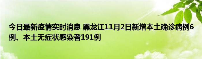 今日最新疫情实时消息 黑龙江11月2日新增本土确诊病例6例、本土无症状感染者191例