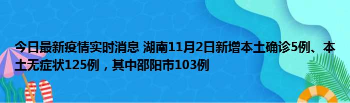 今日最新疫情实时消息 湖南11月2日新增本土确诊5例、本土无症状125例,其中邵阳市103例