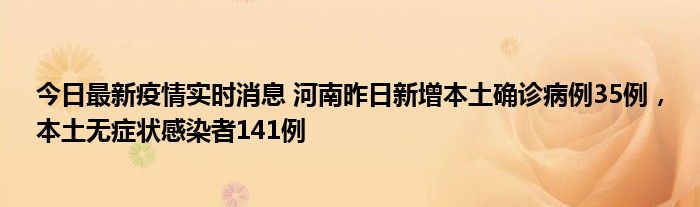 您的位置:首页 >动态频道 > 聚焦疫情 > 今日最新疫情实时消息 河南昨日新增本土确诊病例35例,本土无症状感染者141例 2022-11-05 09:58:35 • 来源: 导读 免责声明:本文由用户上传,如有侵权请联系删除! 上一篇:今日最新疫情实时消息 新疆维吾尔自治区11月2日新增确诊病例25例、无症状感染者376例 下一篇:今日最新疫情实时消息 重庆11月2日新增本土确诊10例、本土无症状7例