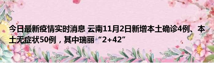 今日最新疫情实时消息 云南11月2日新增本土确诊4例、本土无症状50例,其中瑞丽“2+42”