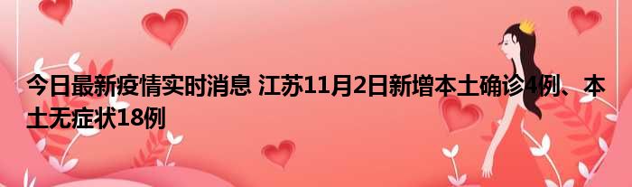 今日最新疫情实时消息 江苏11月2日新增本土确诊4例、本土无症状18例