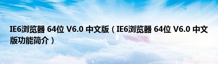 IE6浏览器 64位 V6.0 中文版(IE6浏览器 64位 V6.0 中文版功能简介)