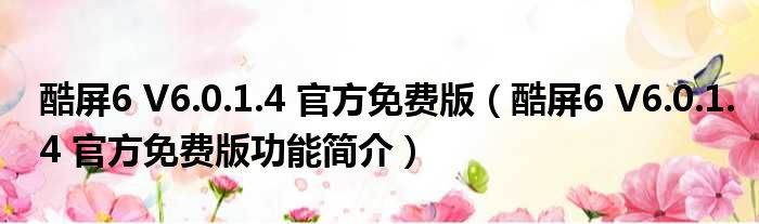 导读 大家好,关于酷屏6 V6 0 1 4 官方免费版,酷屏6 V6 0 1 4 官方免费版功能简介这个很多人还不知道,小勒来为大家解答以上的问题,现在让我