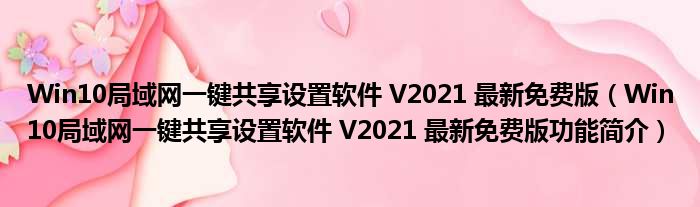 Win10局域网一键共享设置软件 V2021 最新免费版(Win10局域网一键共享设置软件 V2021 最新免费版功能简介)