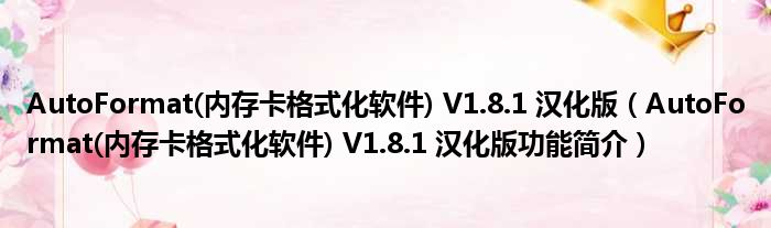 导读 大家好,关于AutoFormat(内存卡格式化软件) V1 8 1 汉化版,AutoFormat(内存卡格式化软件) V1 8 1 汉化版功能简介这个很多人还不知道,小