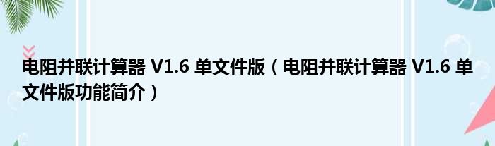 电阻并联计算器 V1.6 单文件版(电阻并联计算器 V1.6 单文件版功能简介)