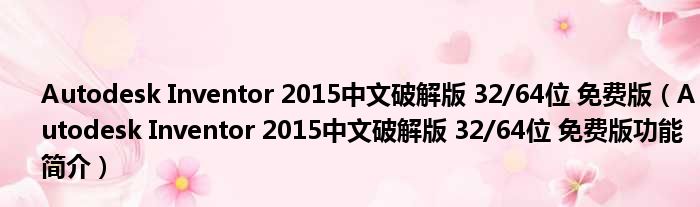 Autodesk Inventor 2015中文破解版 32/64位 免费版(Autodesk Inventor 2015中文破解版 32/64位 免费版功能简介)
