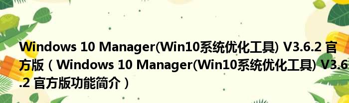 Windows 10 Manager(Win10系统优化工具) V3.6.2 官方版(Windows 10 Manager(Win10系统优化工具) V3.6.2 官方版功能简介)