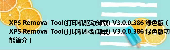 XPS Removal Tool(打印机驱动卸载) V3.0.0.386 绿色版(XPS Removal Tool(打印机驱动卸载) V3.0.0.386 绿色版功能简介)