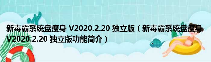 导读 大家好,关于新毒霸系统盘瘦身 V2020 2 20 独立版,新毒霸系统盘瘦身 V2020 2 20 独立版功能简介这个很多人还不知道,小勒来为大家解答以