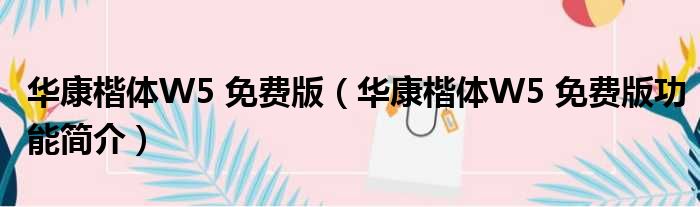 华康楷体W5 免费版(华康楷体W5 免费版功能简介)