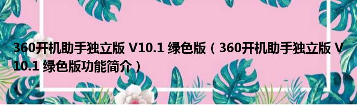 导读 大家好,关于360开机助手独立版 V10 1 绿色版,360开机助手独立版 V10 1 绿色版功能简介这个很多人还不知道,小勒来为大家解答以上的问题