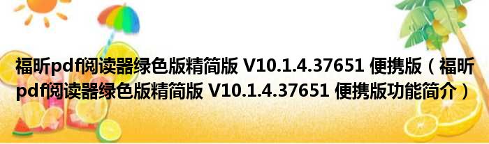 福昕pdf阅读器绿色版精简版 V10.1.4.37651 便携版(福昕pdf阅读器绿色版精简版 V10.1.4.37651 便携版功能简介)