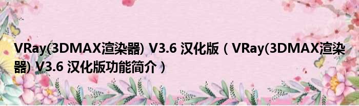 VRay(3DMAX渲染器) V3.6 汉化版(VRay(3DMAX渲染器) V3.6 汉化版功能简介)