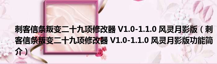 刺客信条叛变二十九项修改器 V1.0-1.1.0 风灵月影版(刺客信条叛变二十九项修改器 V1.0-1.1.0 风灵月影版功能简介)