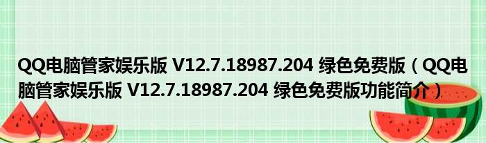 QQ电脑管家娱乐版 V12.7.18987.204 绿色免费版(QQ电脑管家娱乐版 V12.7.18987.204 绿色免费版功能简介)
