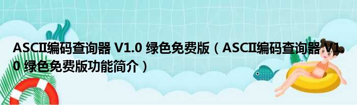 导读 大家好,关于ASCII编码查询器 V1 0 绿色免费版,ASCII编码查询器 V1 0 绿色免费版功能简介这个很多人还不知道,小勒来为大家解答以上的问