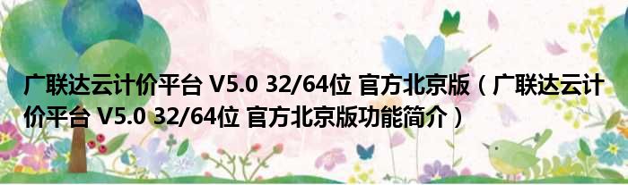 广联达云计价平台 V5.0 32/64位 官方北京版(广联达云计价平台 V5.0 32/64位 官方北京版功能简介)