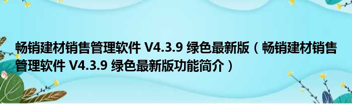 畅销建材销售管理软件 V4.3.9 绿色最新版(畅销建材销售管理软件 V4.3.9 绿色最新版功能简介)