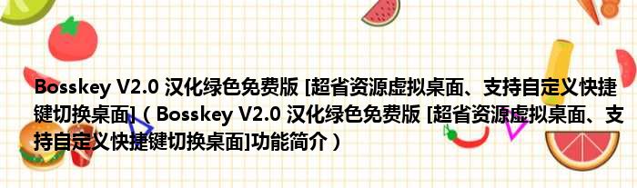 Bosskey V2.0 汉化绿色免费版 [超省资源虚拟桌面、支持自定义快捷键切换桌面](Bosskey V2.0 汉化绿色免费版 [超省资源虚拟桌面、支持自定义快捷键切换桌面]功能简介)