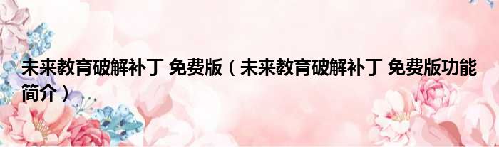 未来教育破解补丁 免费版(未来教育破解补丁 免费版功能简介)