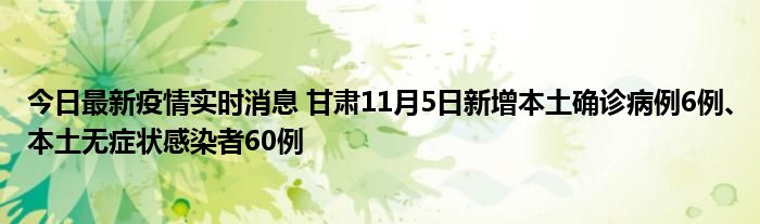 今日最新疫情实时消息 甘肃11月5日新增本土确诊病例6例、本土无症状感染者60例