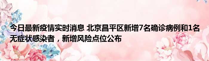 今日最新疫情实时消息 北京昌平区新增7名确诊病例和1名无症状感染者,新增风险点位公布