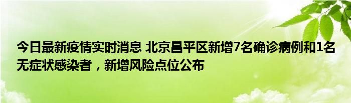今日最新疫情实时消息 北京昌平区新增7名确诊病例和1名无症状感染者,新增风险点位公布