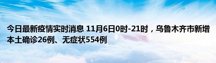 今日最新疫情实时消息 11月6日0时-21时,乌鲁木齐市新增本土确诊26例、无症状554例