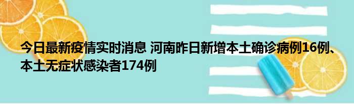 您的位置:首页 >动态频道 > 聚焦疫情 > 今日最新疫情实时消息 河南昨日新增本土确诊病例16例、本土无症状感染者174例 2022-11-12 13:58:13 • 来源: 导读 免责声明:本文由用户上传,如有侵权请联系删除! 上一篇:今日最新疫情实时消息 北京东城新增感染者1名,为确诊病例密接人员 下一篇:今日最新疫情实时消息 北京昌平区新增7名确诊病例和1名无症状感染者,新增风险点位公布