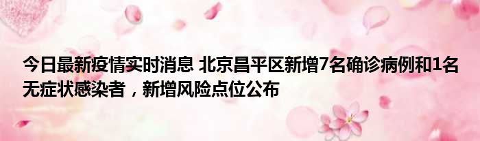 今日最新疫情实时消息 北京昌平区新增7名确诊病例和1名无症状感染者,新增风险点位公布