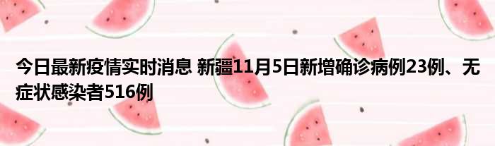 据新疆卫健委通报,11月5日0时至24时,新疆维吾尔自治区新增确诊病例23例,新增无症状感染者516例,新增确诊病例治愈出院7例,新增无症状