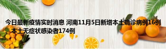 今日最新疫情实时消息 河南11月5日新增本土确诊病例16例、本土无症状感染者174例