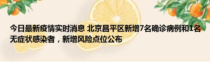 今日最新疫情实时消息 北京昌平区新增7名确诊病例和1名无症状感染者,新增风险点位公布