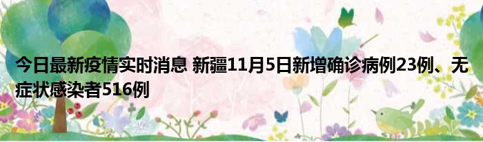 据新疆卫健委通报,11月5日0时至24时,新疆维吾尔自治区新增确诊病例23例,新增无症状感染者516例,新增确诊病例治愈出院7例,新增无症状