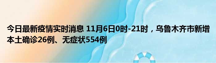 今日最新疫情实时消息 11月6日0时-21时,乌鲁木齐市新增本土确诊26例、无症状554例