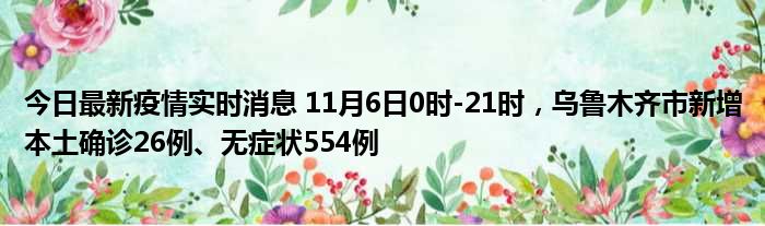 今日最新疫情实时消息 11月6日0时-21时,乌鲁木齐市新增本土确诊26例、无症状554例