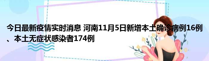 今日最新疫情实时消息 河南11月5日新增本土确诊病例16例、本土无症状感染者174例