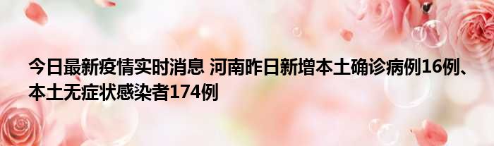 您的位置:首页 >动态频道 > 聚焦疫情 > 今日最新疫情实时消息 河南昨日新增本土确诊病例16例、本土无症状感染者174例 2022-11-12 22:54:12 • 来源: 导读 免责声明:本文由用户上传,如有侵权请联系删除! 上一篇:今日最新疫情实时消息 北京东城新增感染者1名,为确诊病例密接人员 下一篇:今日最新疫情实时消息 北京昌平区新增7名确诊病例和1名无症状感染者,新增风险点位公布