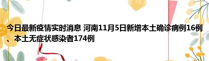 今日最新疫情实时消息 河南11月5日新增本土确诊病例16例、本土无症状感染者174例