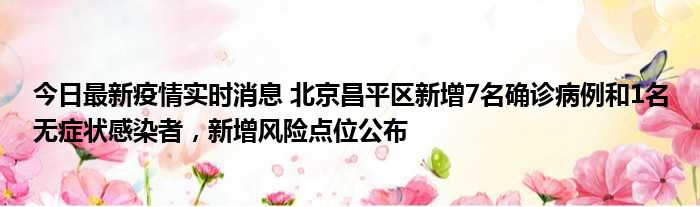 今日最新疫情实时消息 北京昌平区新增7名确诊病例和1名无症状感染者,新增风险点位公布
