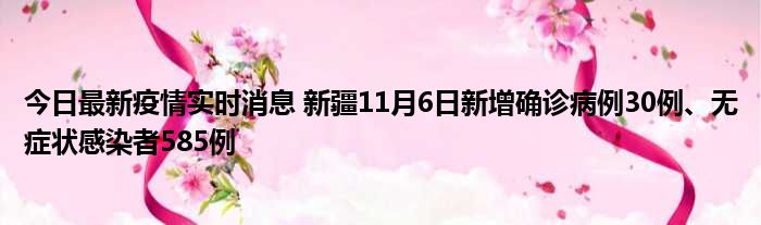据新疆卫健委通报,11月6日0时至24时,新疆维吾尔自治区新增确诊病例30例,新增无症状感染者585例,新增确诊病例治愈出院2例,新增无症状