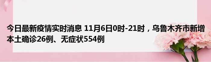 今日最新疫情实时消息 11月6日0时-21时,乌鲁木齐市新增本土确诊26例、无症状554例