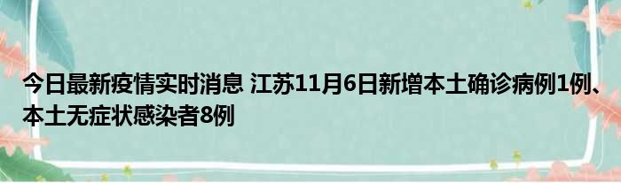 江苏卫健委通报,11月6日0-24时,江苏新增本土确诊病例1例(南京市报告,为集中隔离点发现,在定点医院隔离治疗)新增本土无症状感染者8