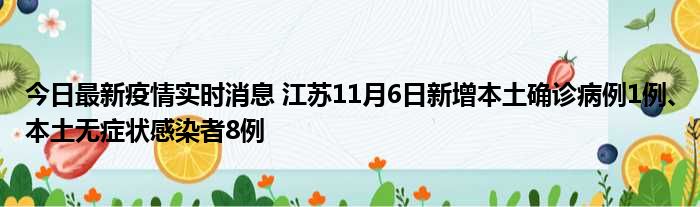江苏卫健委通报,11月6日0-24时,江苏新增本土确诊病例1例(南京市报告,为集中隔离点发现,在定点医院隔离治疗)新增本土无症状感染者8