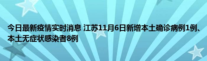 江苏卫健委通报,11月6日0-24时,江苏新增本土确诊病例1例(南京市报告,为集中隔离点发现,在定点医院隔离治疗)新增本土无症状感染者8