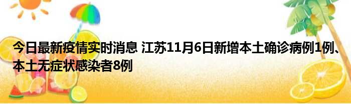 江苏卫健委通报,11月6日0-24时,江苏新增本土确诊病例1例(南京市报告,为集中隔离点发现,在定点医院隔离治疗)新增本土无症状感染者8